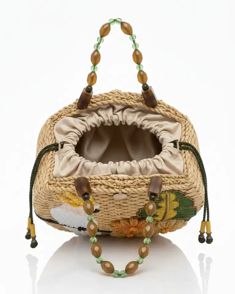 Bolsa Clutch Bag em palha natural, bordada manualmente com cristais de altíssima qualidade.